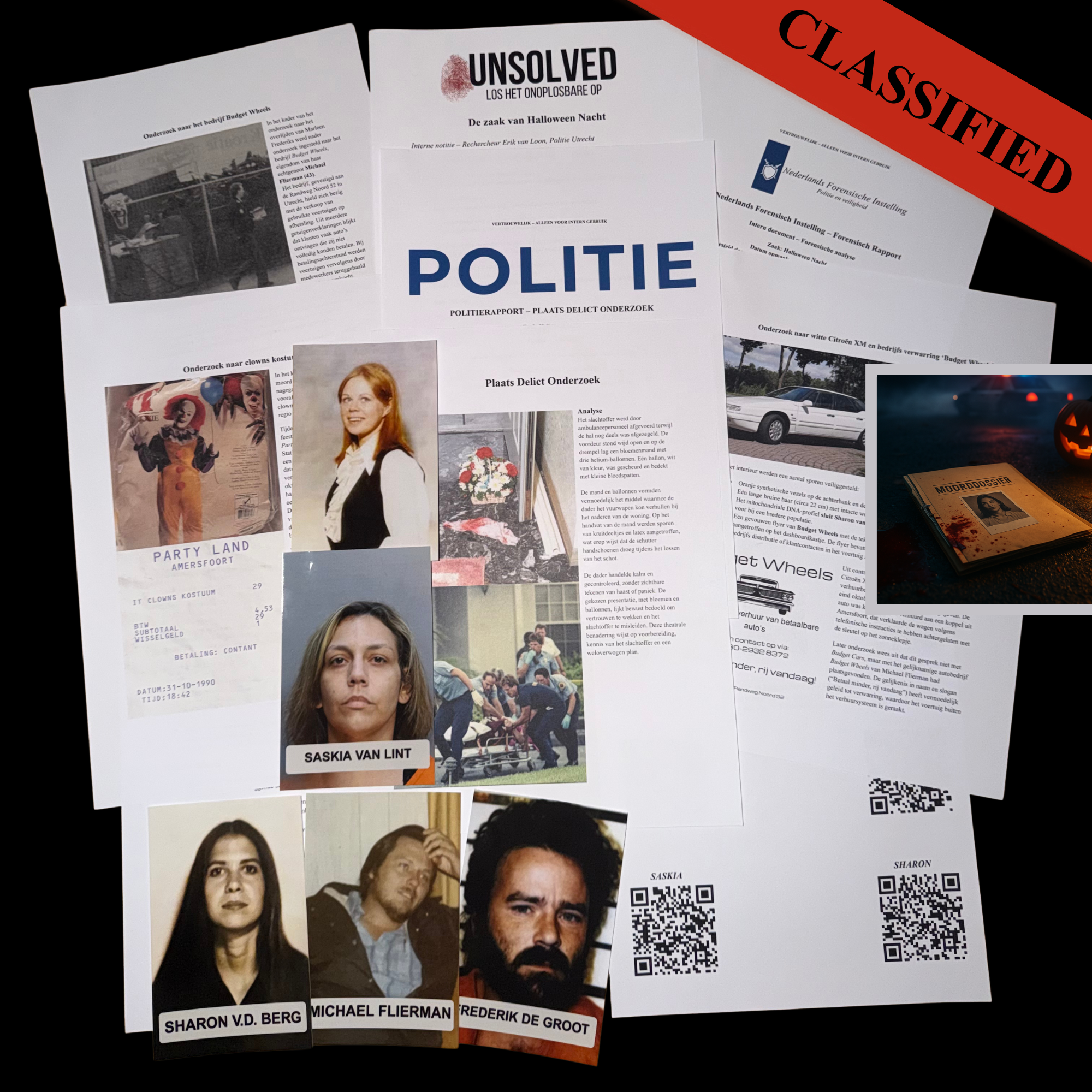 Een volledig onderzoeksdossier met realistische documenten, verhoren en bewijsmateriaal: